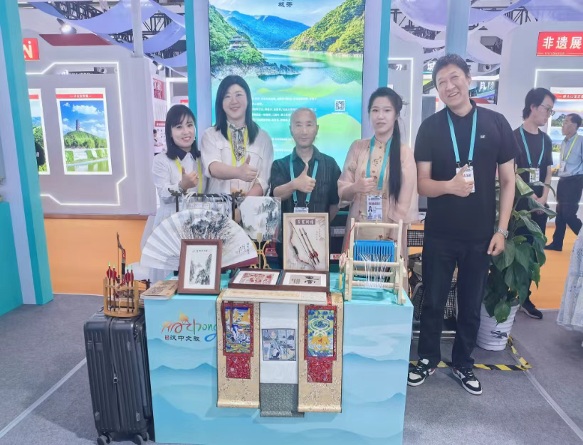 在文旅消費(fèi)展?jié)h中展區(qū)的漢臺展臺,一場跨越千年的文化之旅徐徐展開。傳統(tǒng)弓箭、漢中錦緞織造技藝等6大類40余件非遺文創(chuàng)產(chǎn)品在此集中展示。傳統(tǒng)弓箭制作技藝傳承人用古法之妙,使柔弦勁桿相得益彰,剛?cè)峄?jì)間盡顯弓道精髓;漢中錦緞織造技藝則以經(jīng)緯交織的匠心,讓流光溢彩的紋樣在指尖重現(xiàn)漢唐風(fēng)華;焦墨繪畫以枯潤相間的筆觸勾勒山水蒼茫;麥秸畫巧妙擷取金黃秸稈,通過熨燙、剪裁、粘貼等工序,將自然肌理轉(zhuǎn)化為細(xì)膩畫卷;布藝刺繡以細(xì)密針腳繡出靈動花鳥,色彩明艷的絲線在織物上綻放生機(jī);布堆畫則以立體拼貼技法,將民俗故事與傳統(tǒng)紋樣轉(zhuǎn)化為層次豐富的藝術(shù)作品。展會現(xiàn)場,精湛的非遺文創(chuàng)產(chǎn)品吸引了與會嘉賓、客商駐足圍觀,紛紛感嘆漢臺非遺的深厚底蘊(yùn)與時(shí)代魅力。