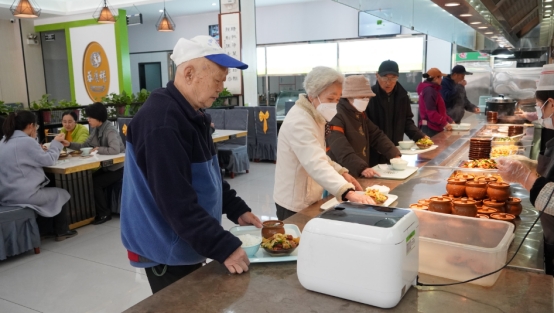 食鮮易廚店長宋陽:“我們的食材都是當天新鮮采購的,照顧到老年人的用餐習慣,口味都少油少鹽偏清淡。到店65歲以上老人就餐打8折,75歲以上老人享受到半價。”