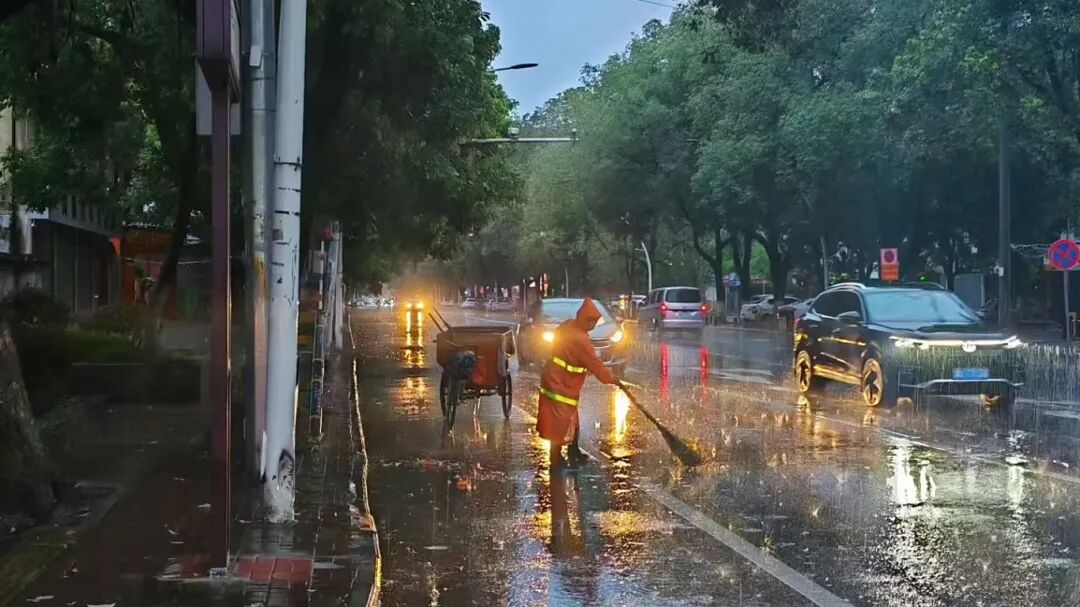從清晨到午后,雨勢(shì)時(shí)大時(shí)小,但這些城市守護(hù)者的身影始終活躍在街頭巷尾。環(huán)衛(wèi)工人的辛勤勞作,保證了雨停路凈;執(zhí)法隊(duì)員的及時(shí)處置,確保了道路通暢。他們?cè)诖笥曛袌?jiān)守的背影,成為了這座城市最動(dòng)人的風(fēng)景,也筑起了一道堅(jiān)實(shí)的“暖心防線”,贏得了過(guò)往市民的由衷點(diǎn)贊。