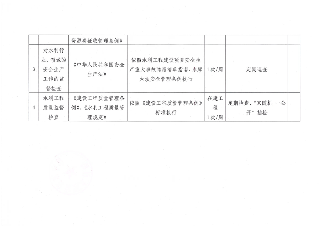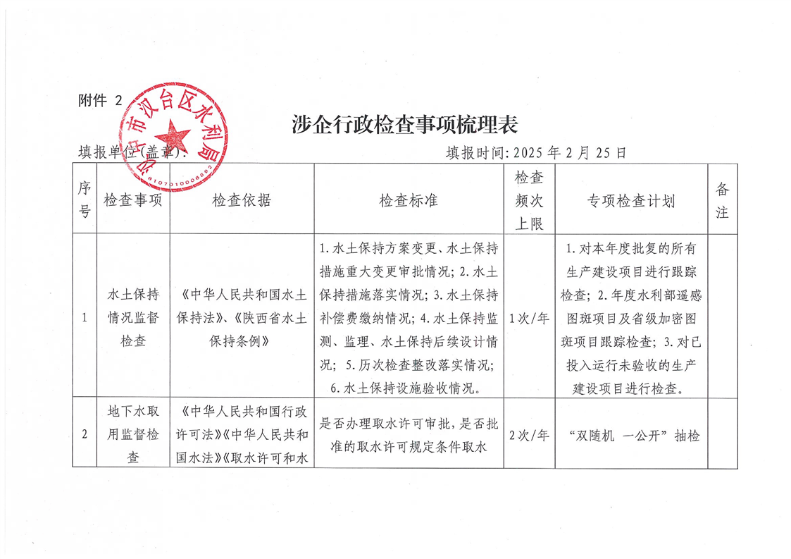 漢臺區水利局涉企行政檢查事項梳理表