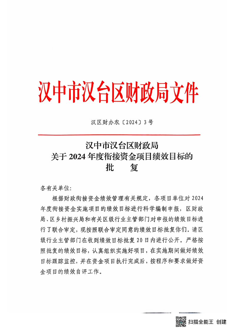 漢臺區(qū)2024年財(cái)政銜接資金第一批產(chǎn)業(yè)發(fā)展項(xiàng)目績效目標(biāo)公開