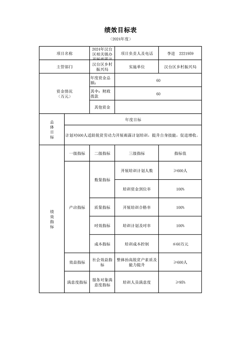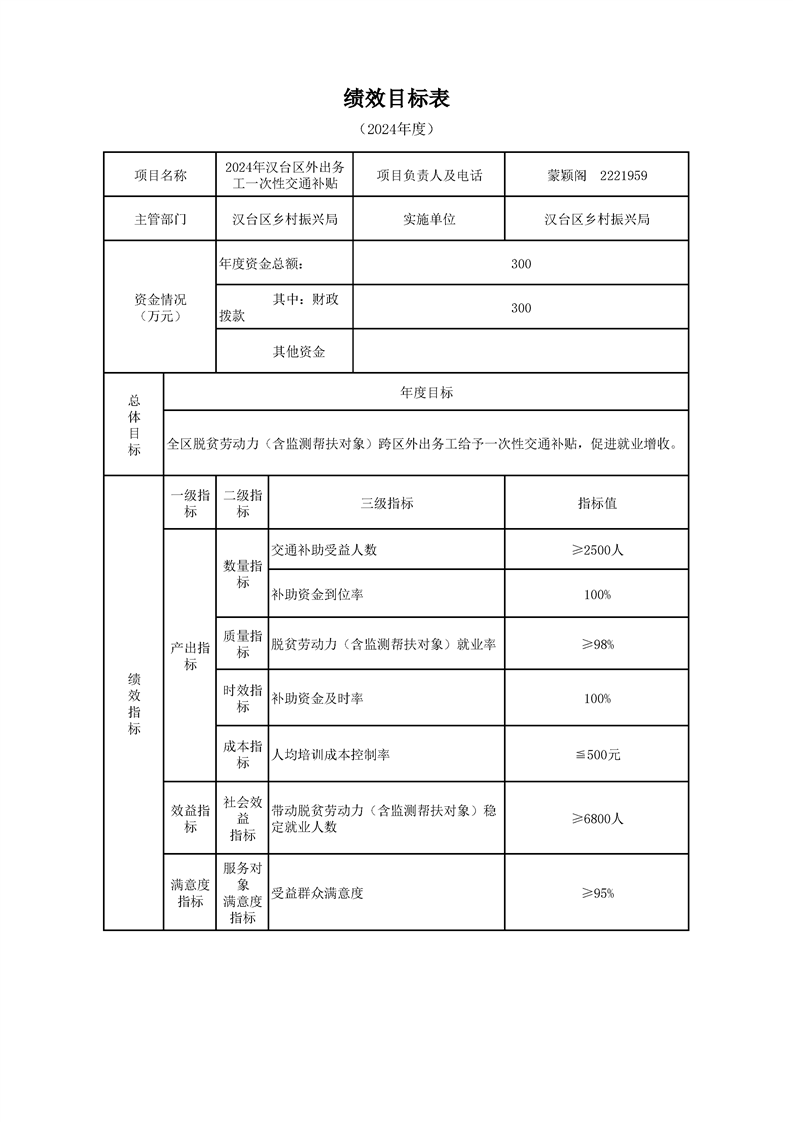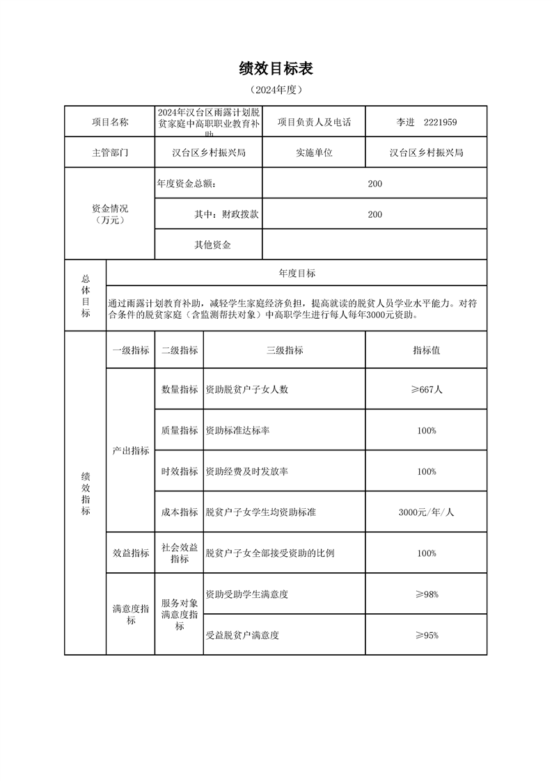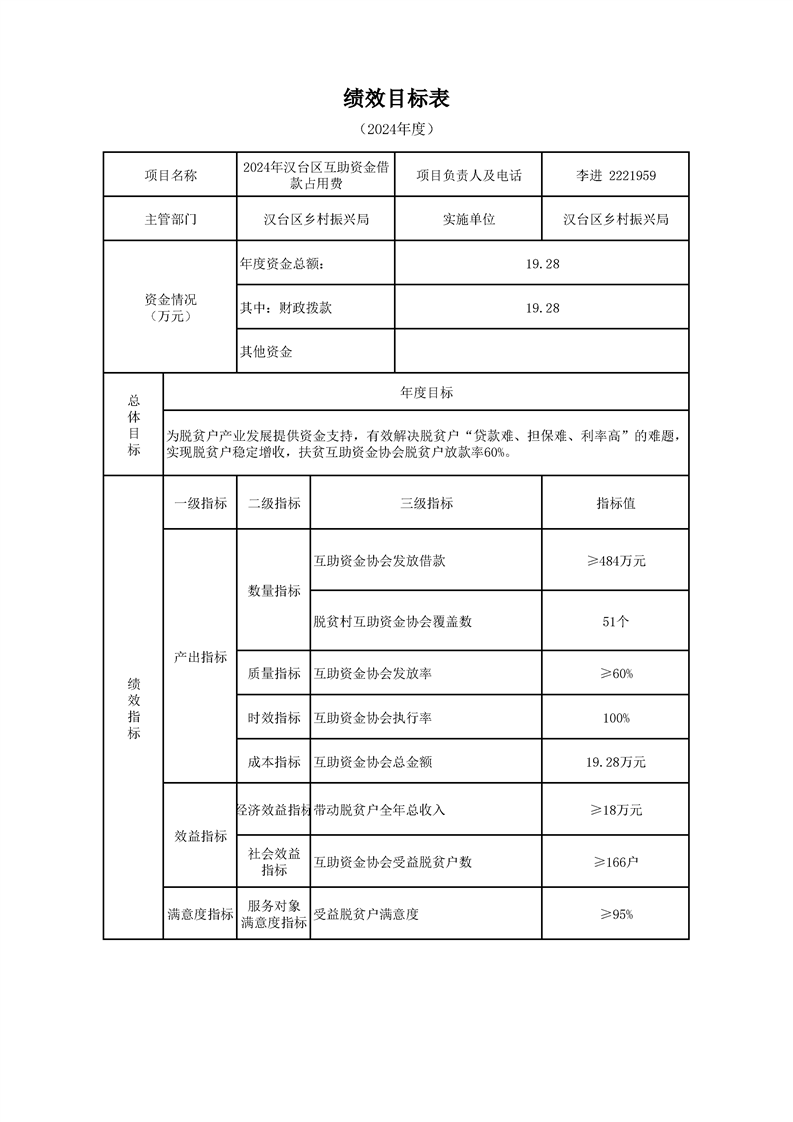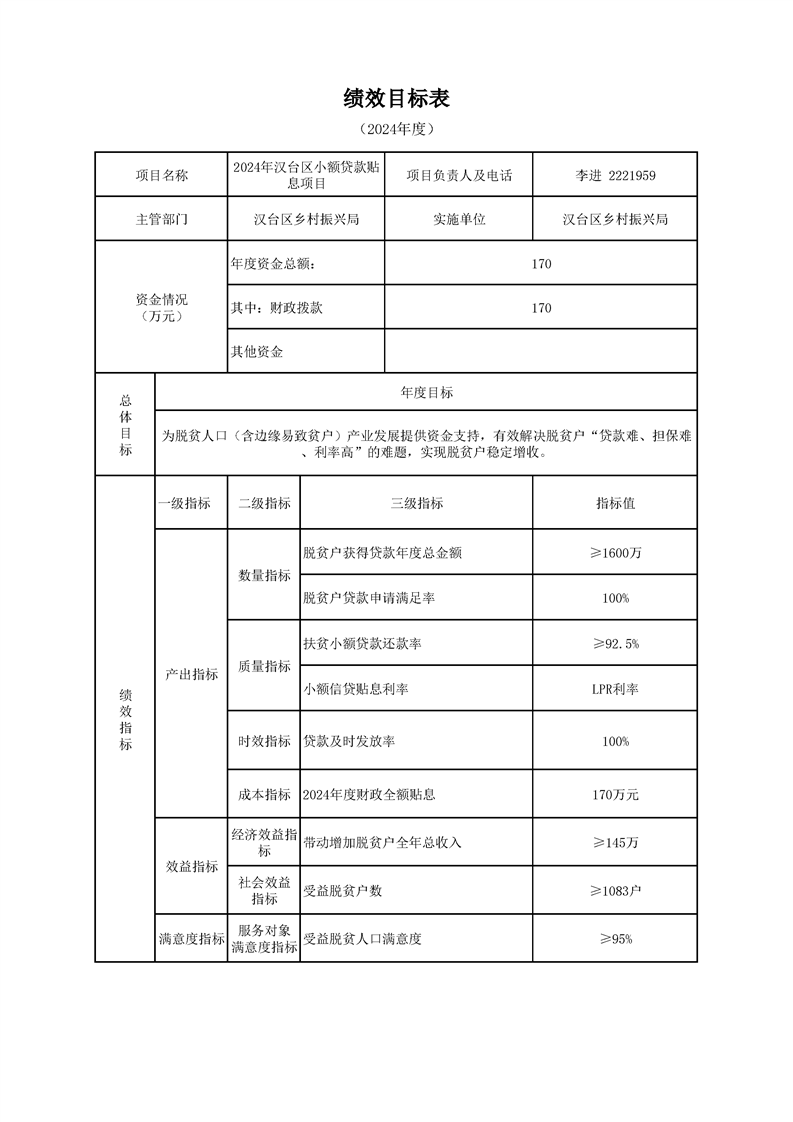 關于漢臺區2024年第一批財政銜接資金小額貸款貼息等項目績效目標公開