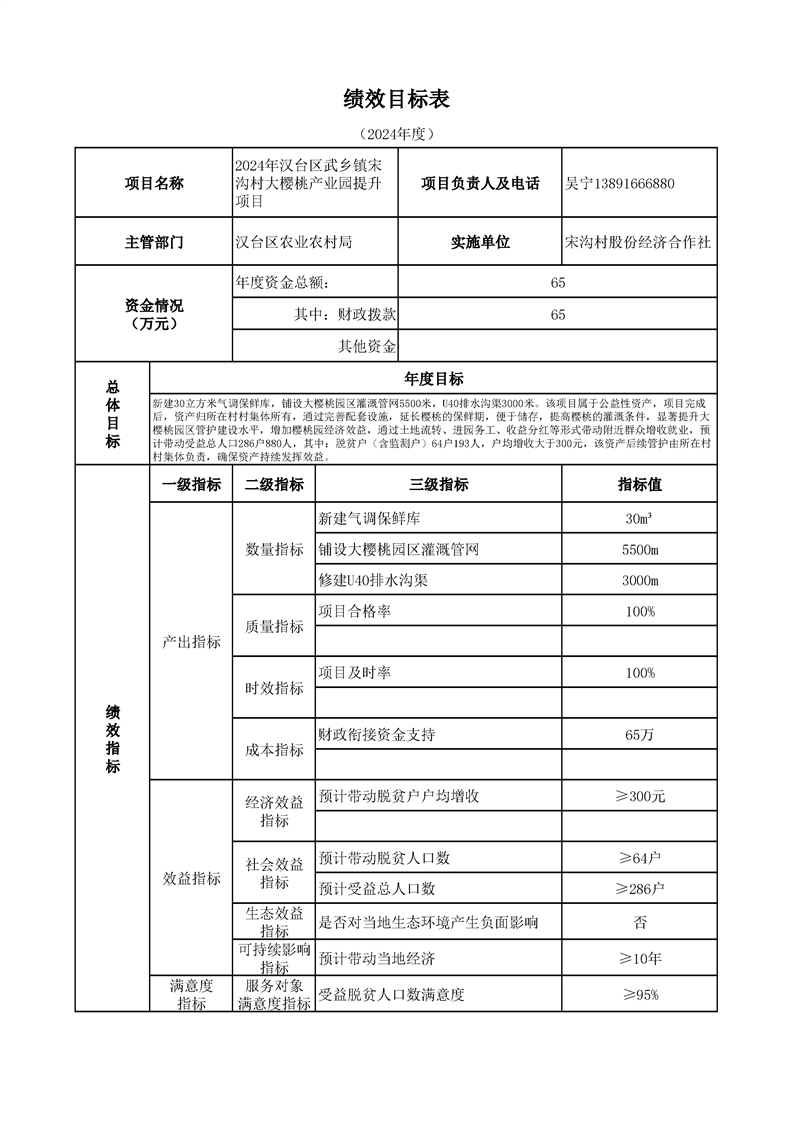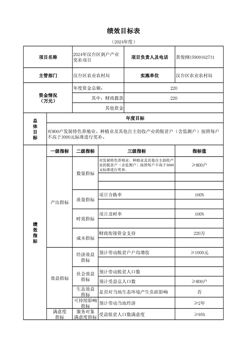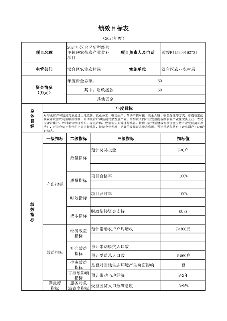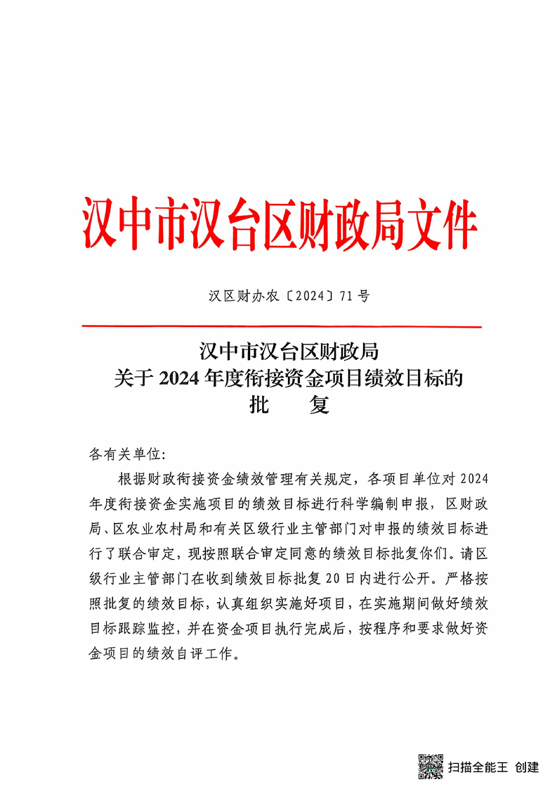 漢臺區2024年財政銜接資金第五批產業發展項目績效目標公開