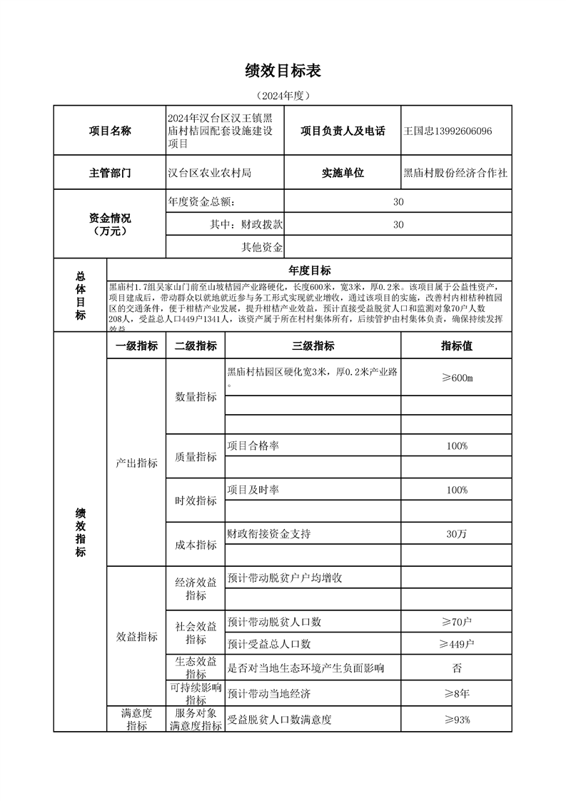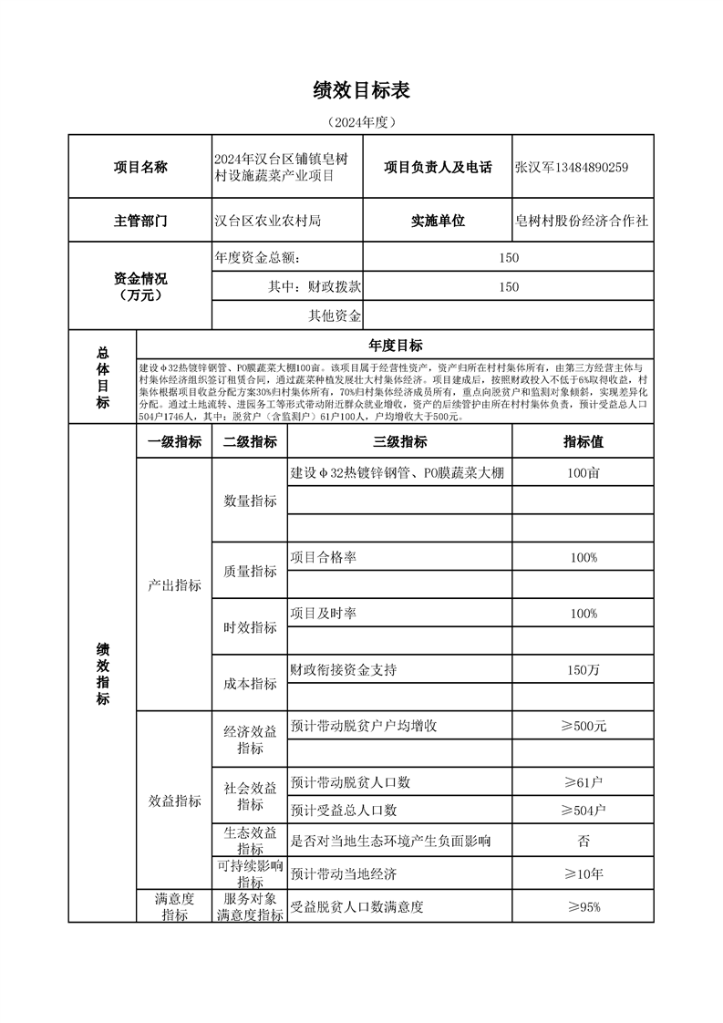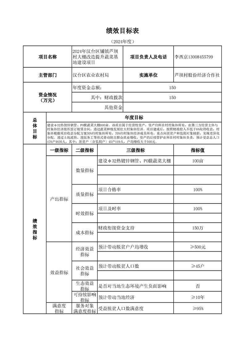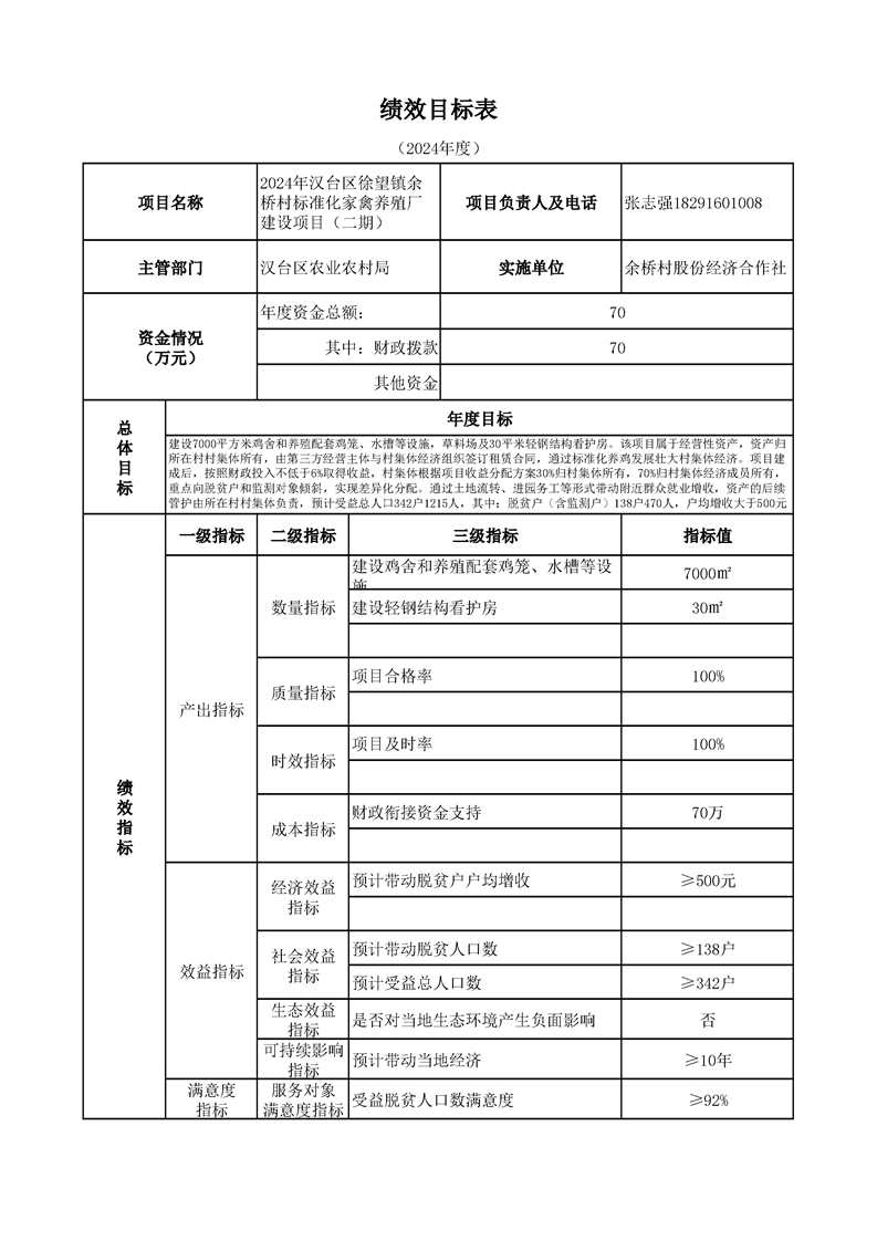 漢臺區2024年財政銜接資金第五批產業發展項目績效目標公開