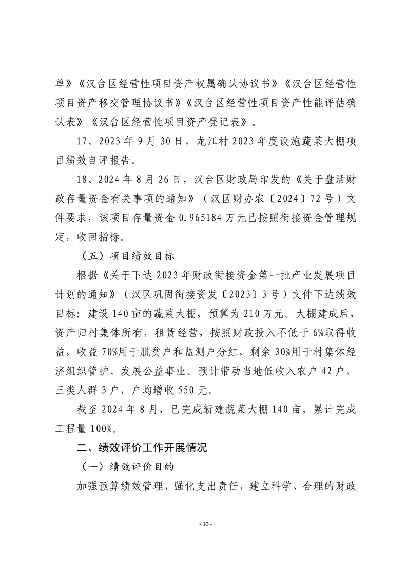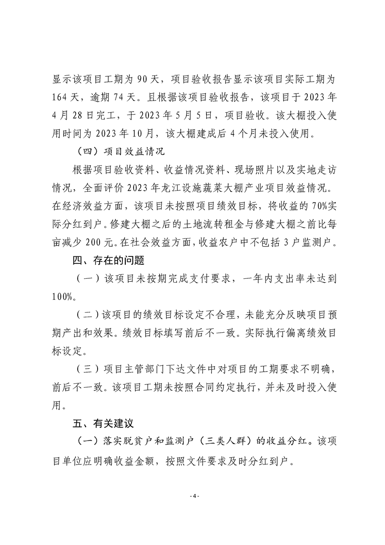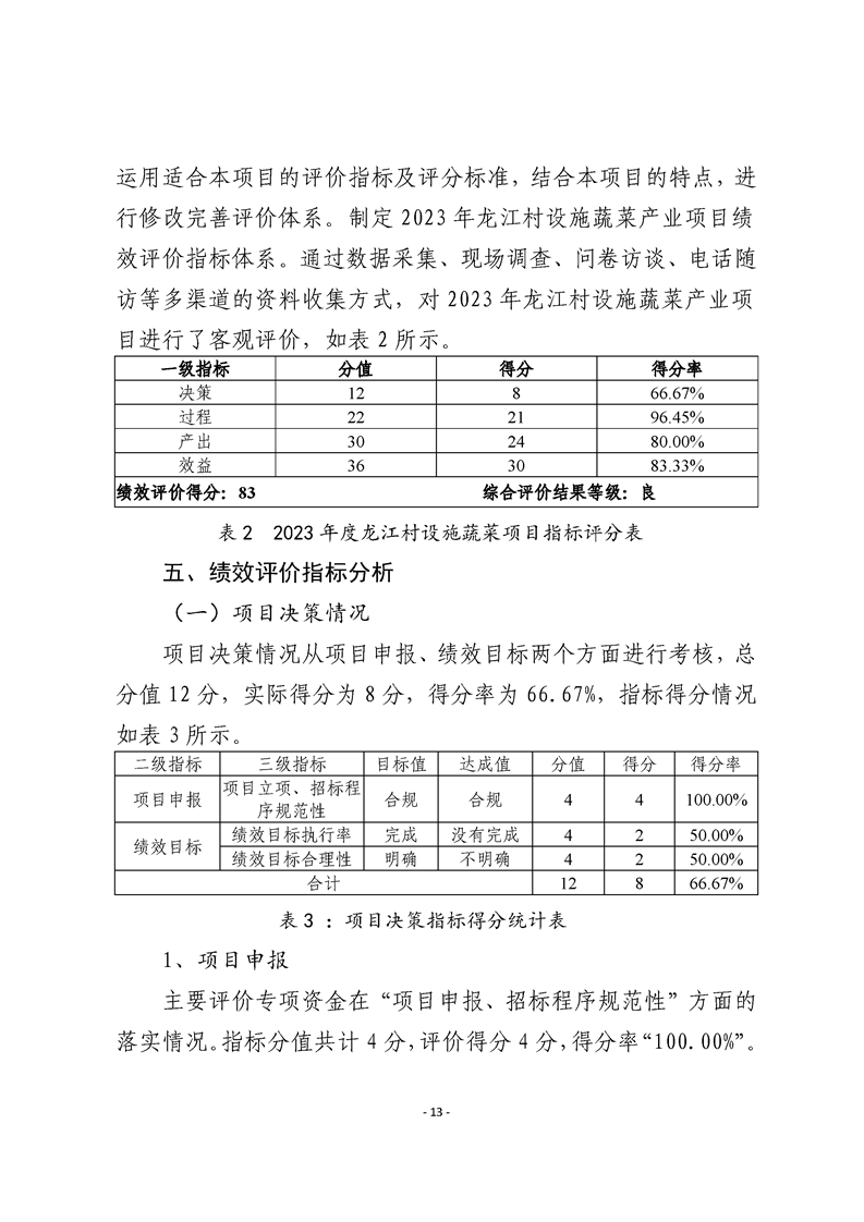 2023年龍江村設(shè)施蔬菜產(chǎn)業(yè)項目績效評價報告