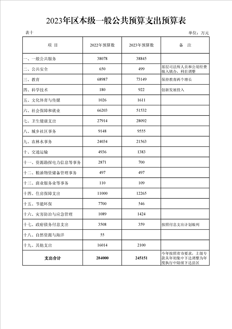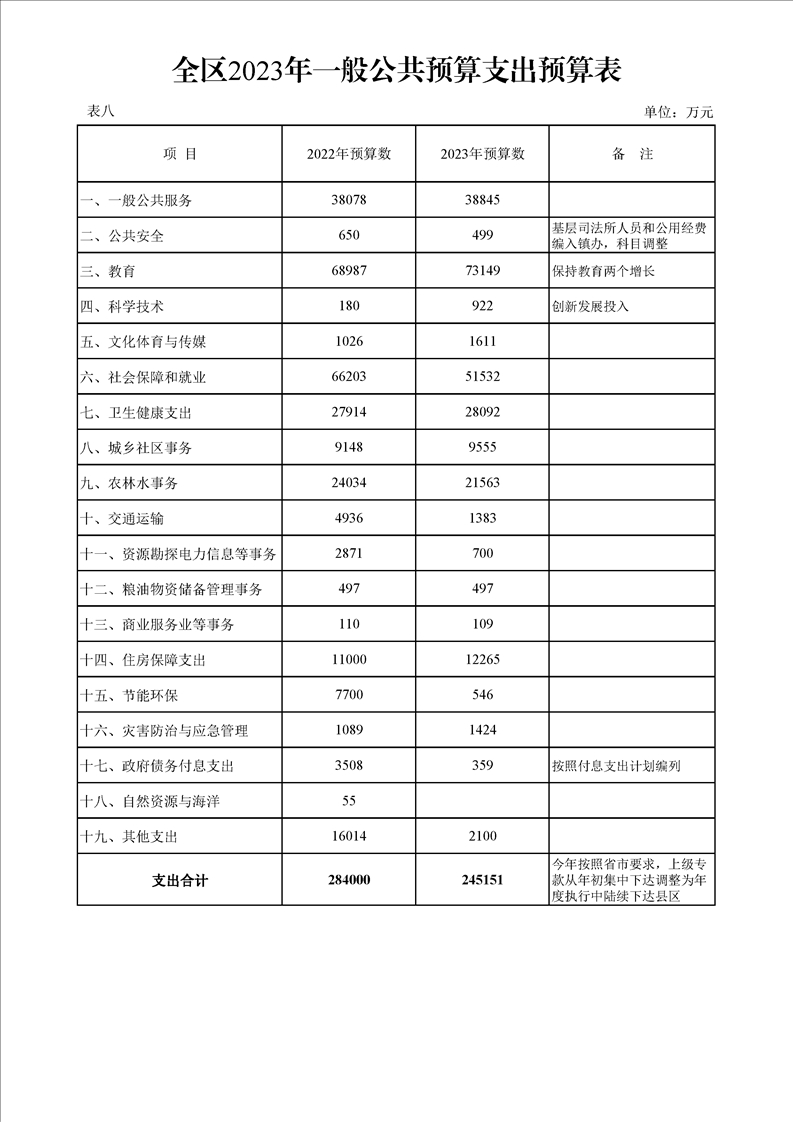 漢中市漢臺區2022年財政預算執行情況和2023年財政預算(草案)