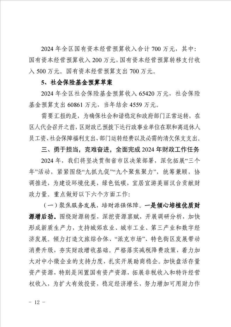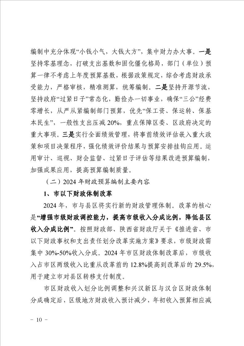 關于漢中市漢臺區2023年財政預算執行情況和2024年財政預算草案的報告