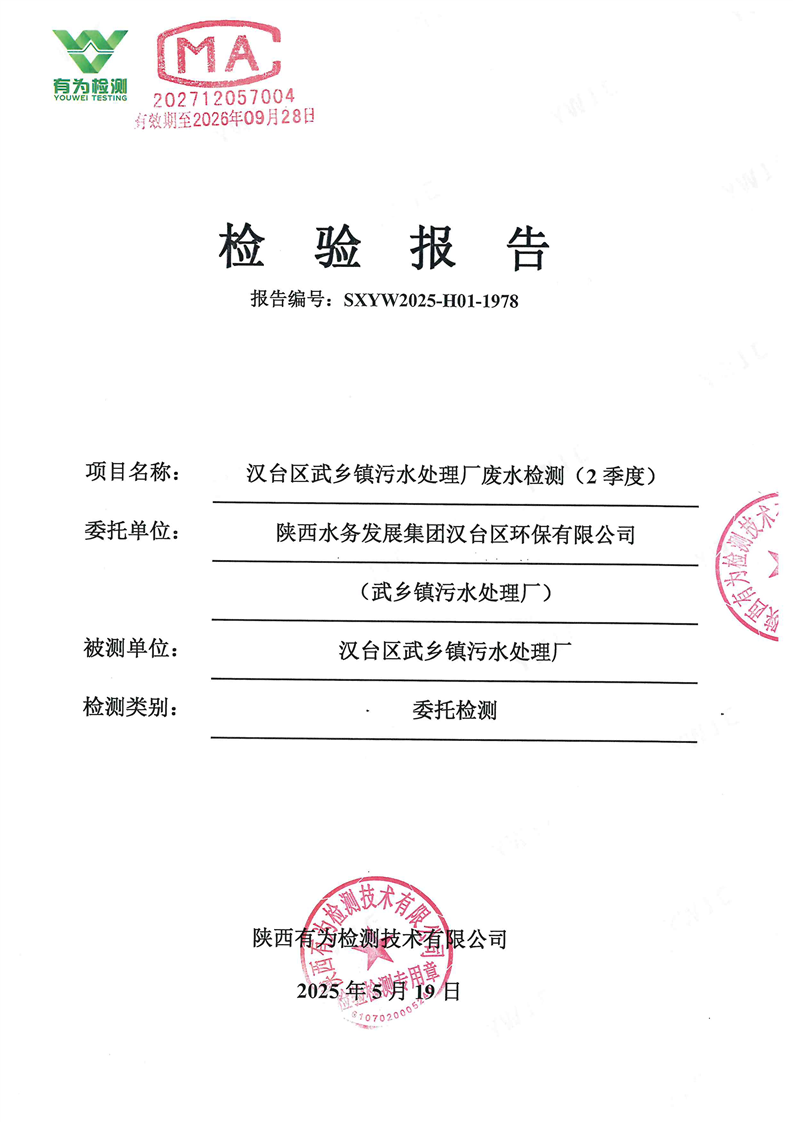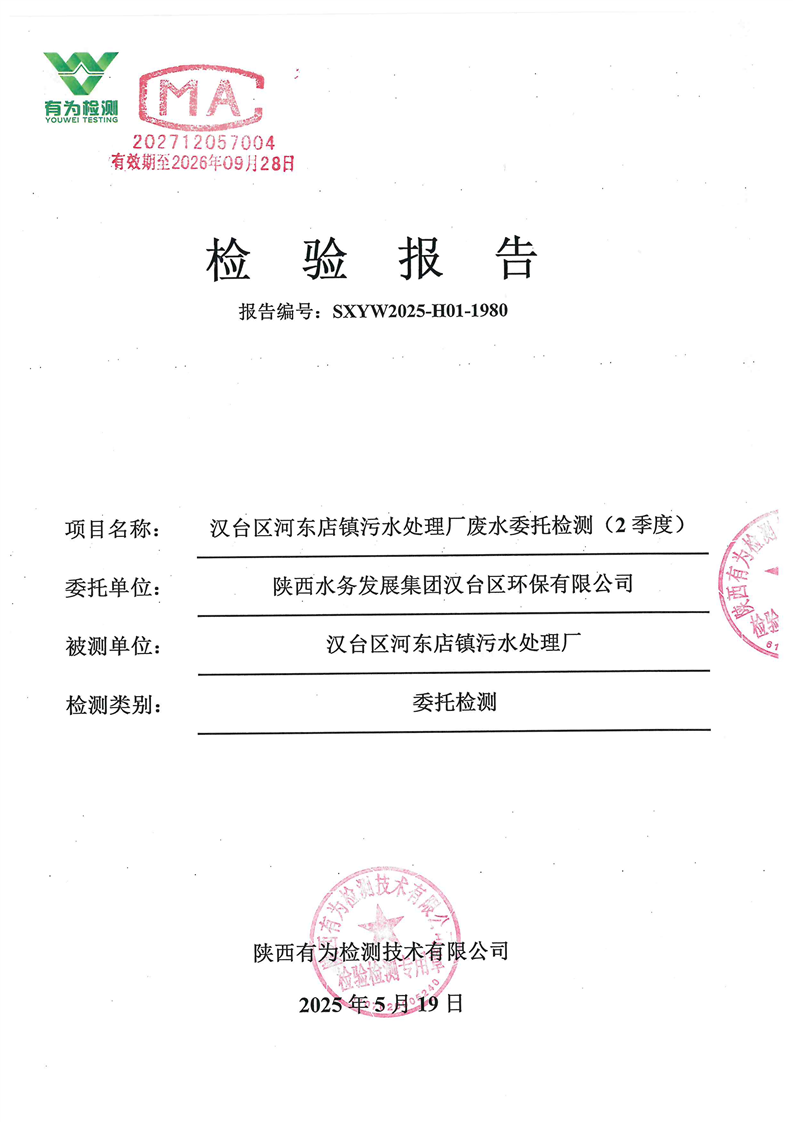 漢臺區二季度武鄉、河東店鎮污水處理廠廢水檢測報告