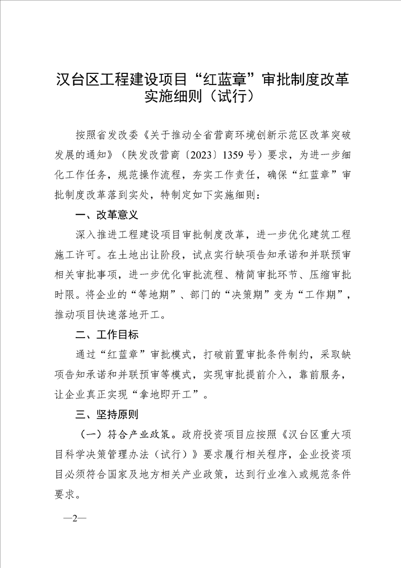 漢中市漢臺區人民政府辦公室關于印發《漢臺區工程建設項目“紅藍章”審批制度改革實施細則(試行)》的通 知