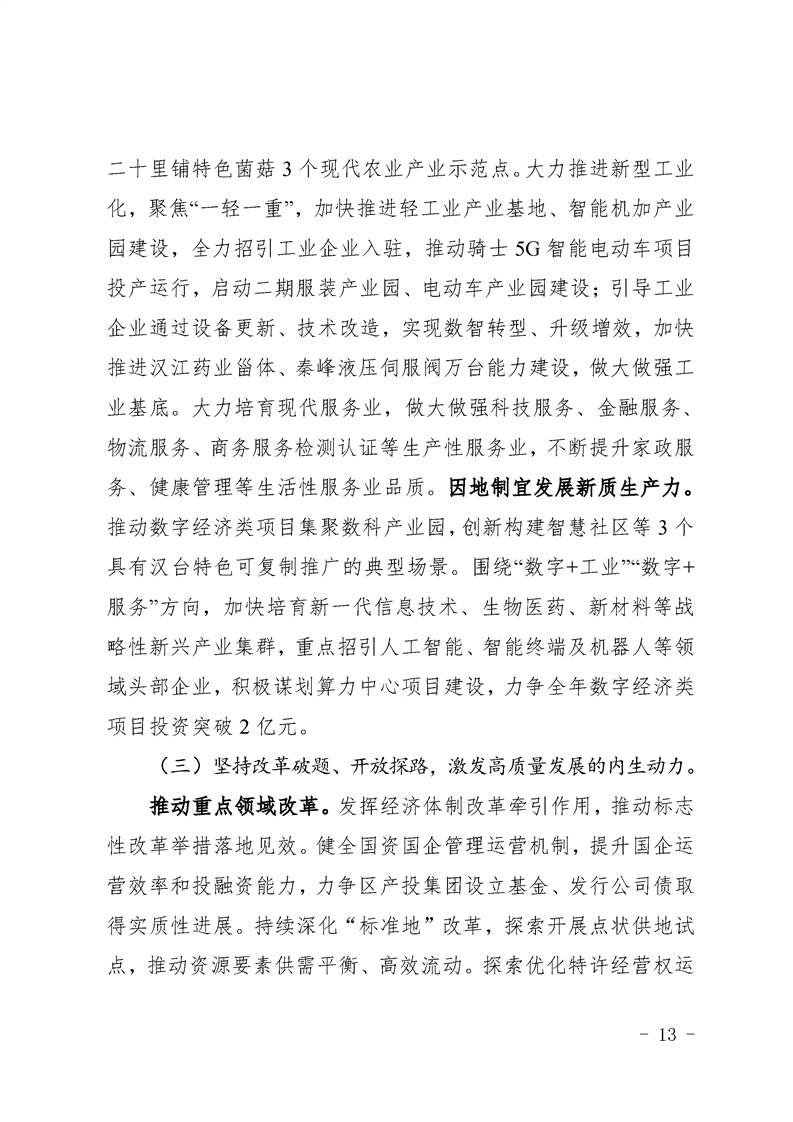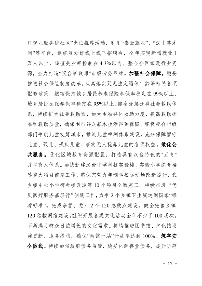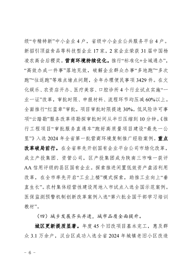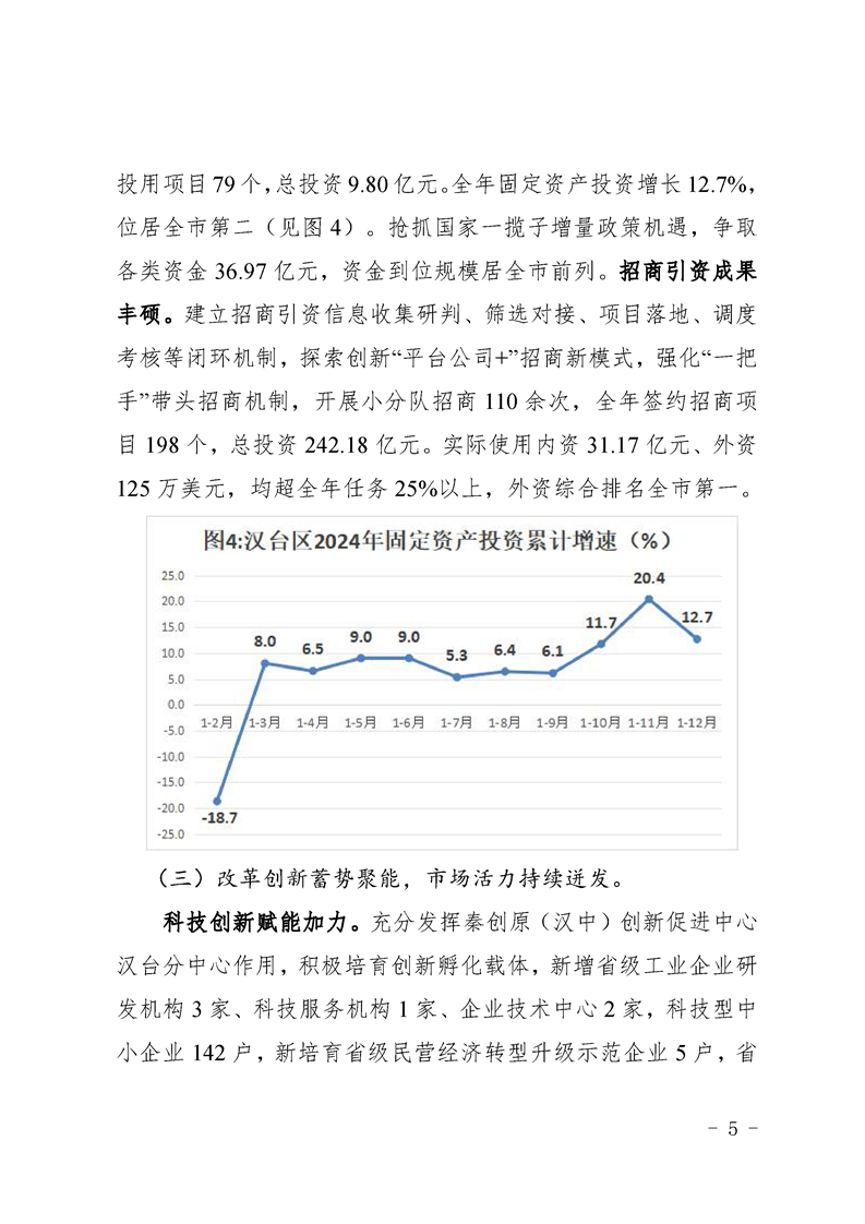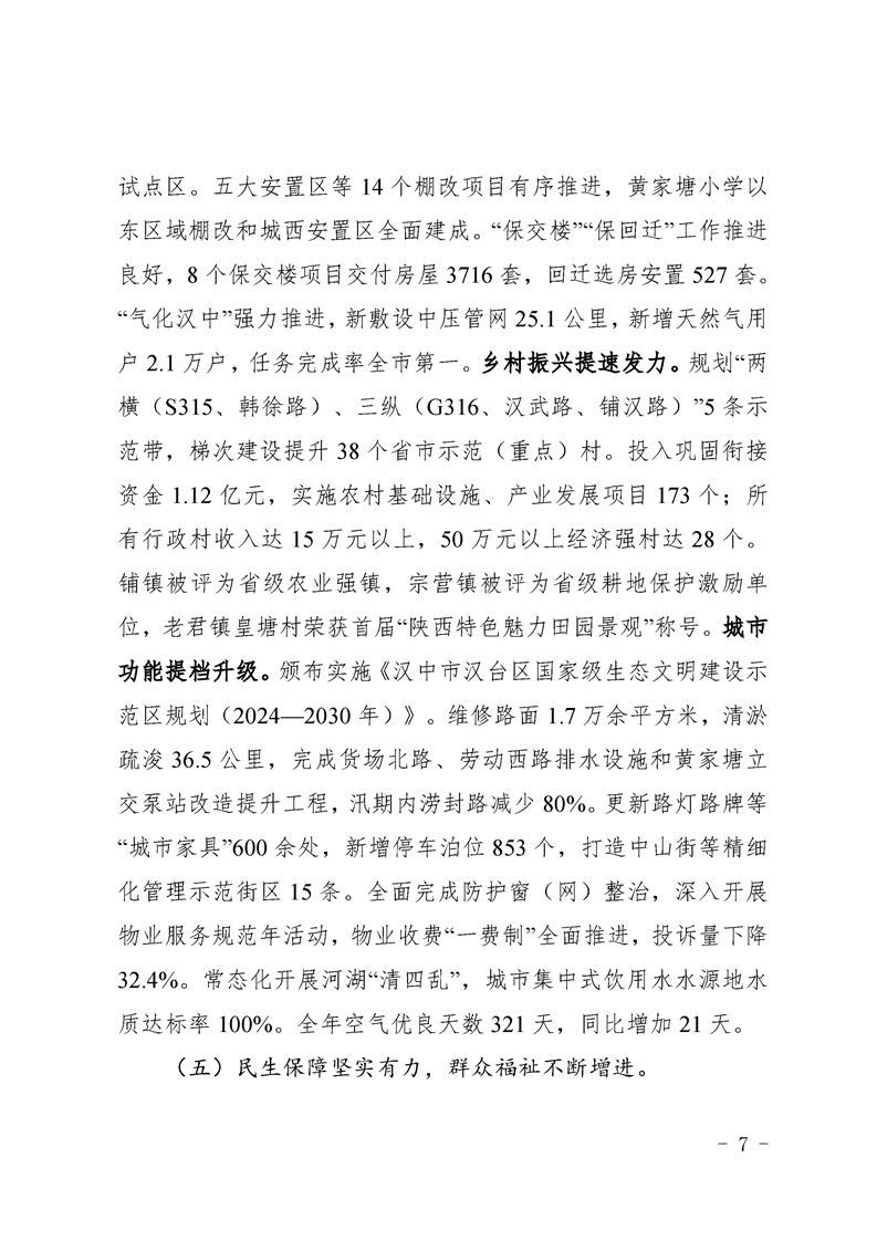 關于漢中市漢臺區2024年國民經濟與社會發展計劃執行情況和2025年計劃草案的報告