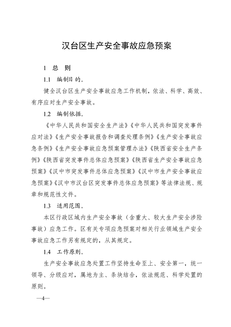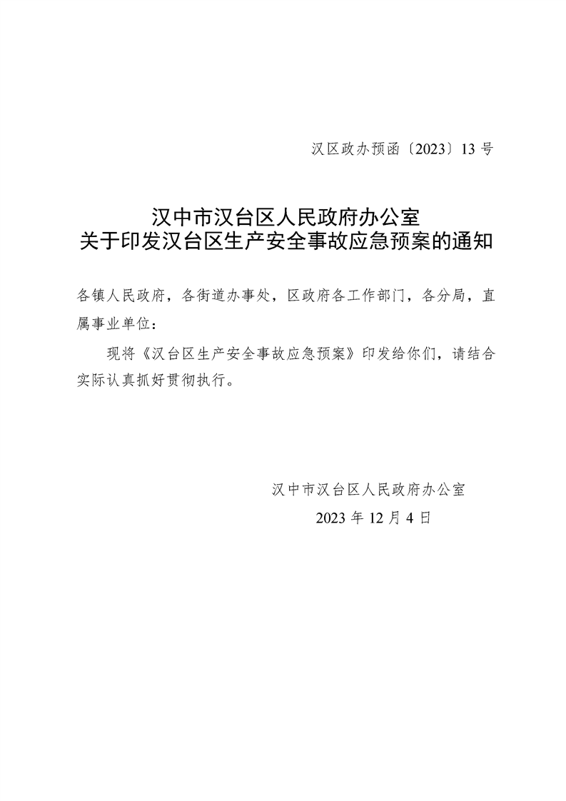 漢中市漢臺區人民政府辦公室關于印發漢臺區生產安全事故應急預案的通知