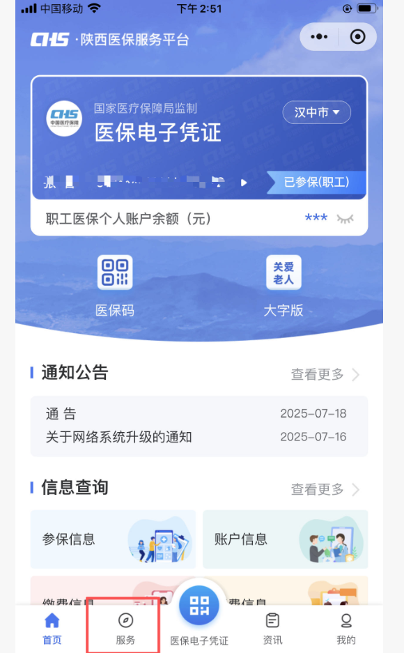 1.手機登錄“陜西醫保”微信小程序,點擊左下角“服務”