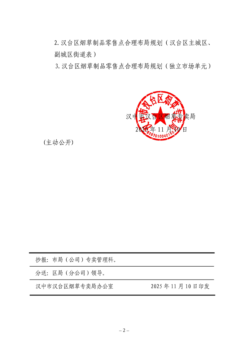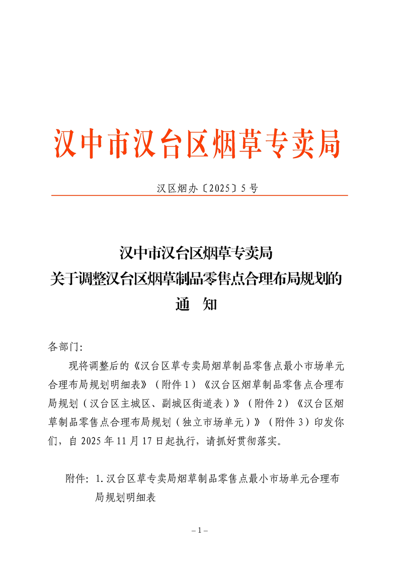 漢中市漢臺區煙草專賣局關于調整漢臺區煙草制品零售點合理布局規劃的通知