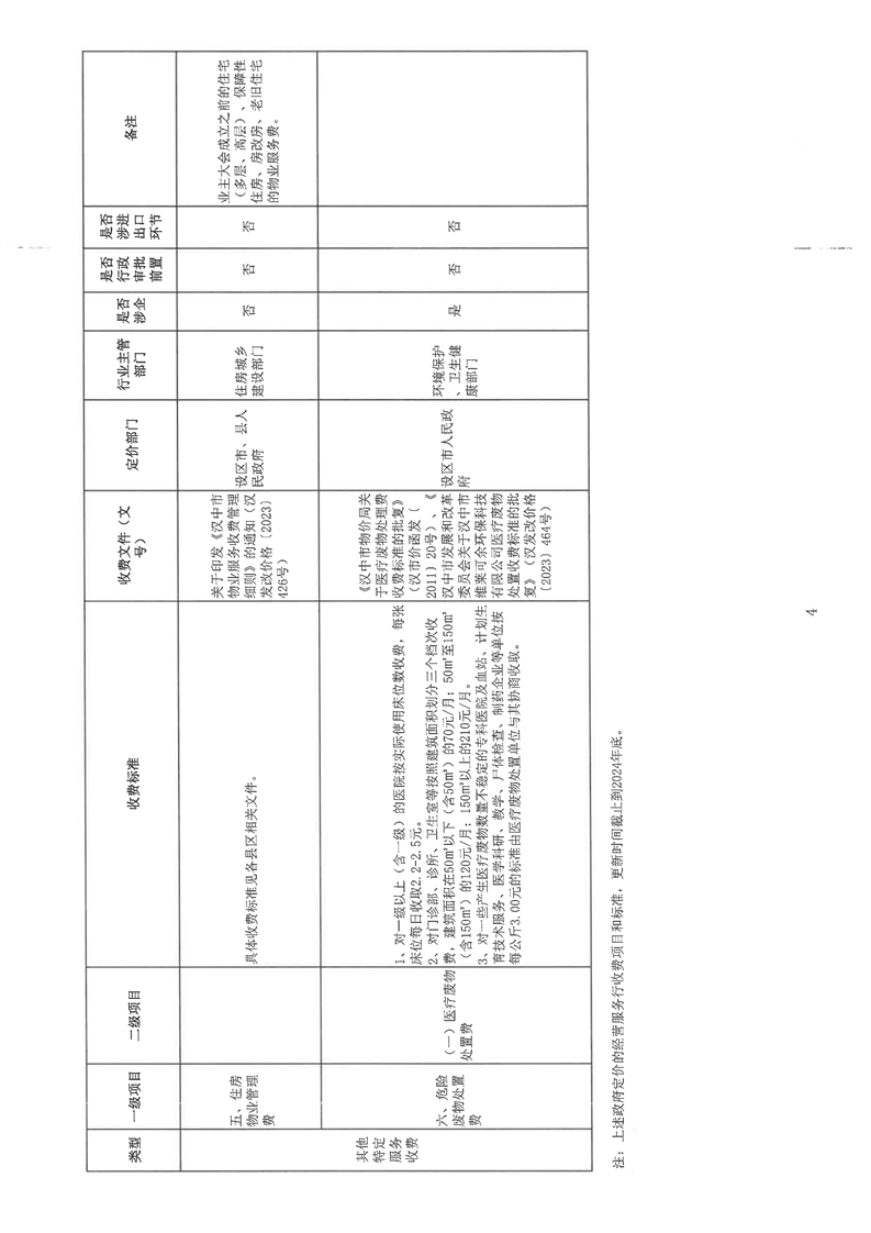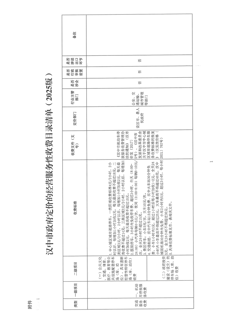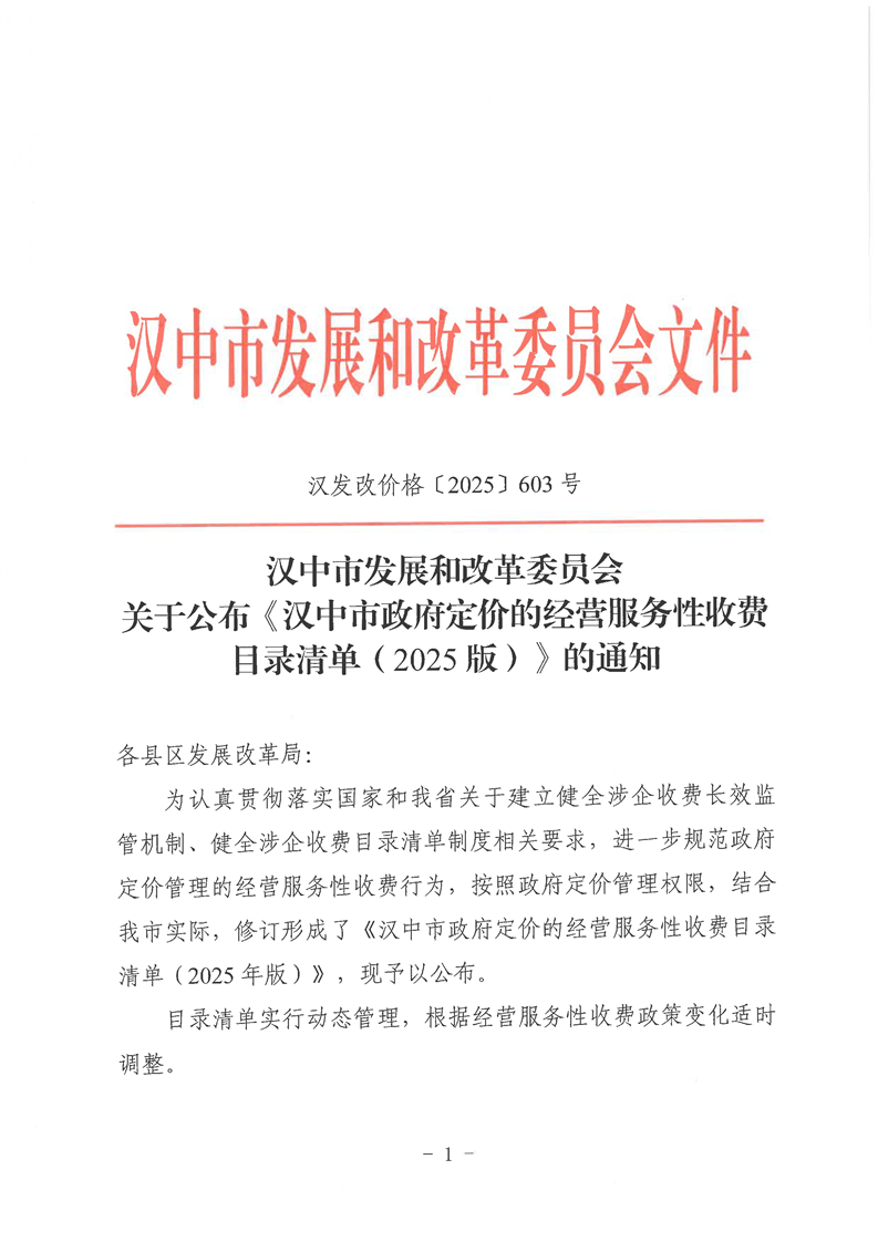 關于公布《漢中市政府定價的經營服務性收費目錄清單2025版》的通知